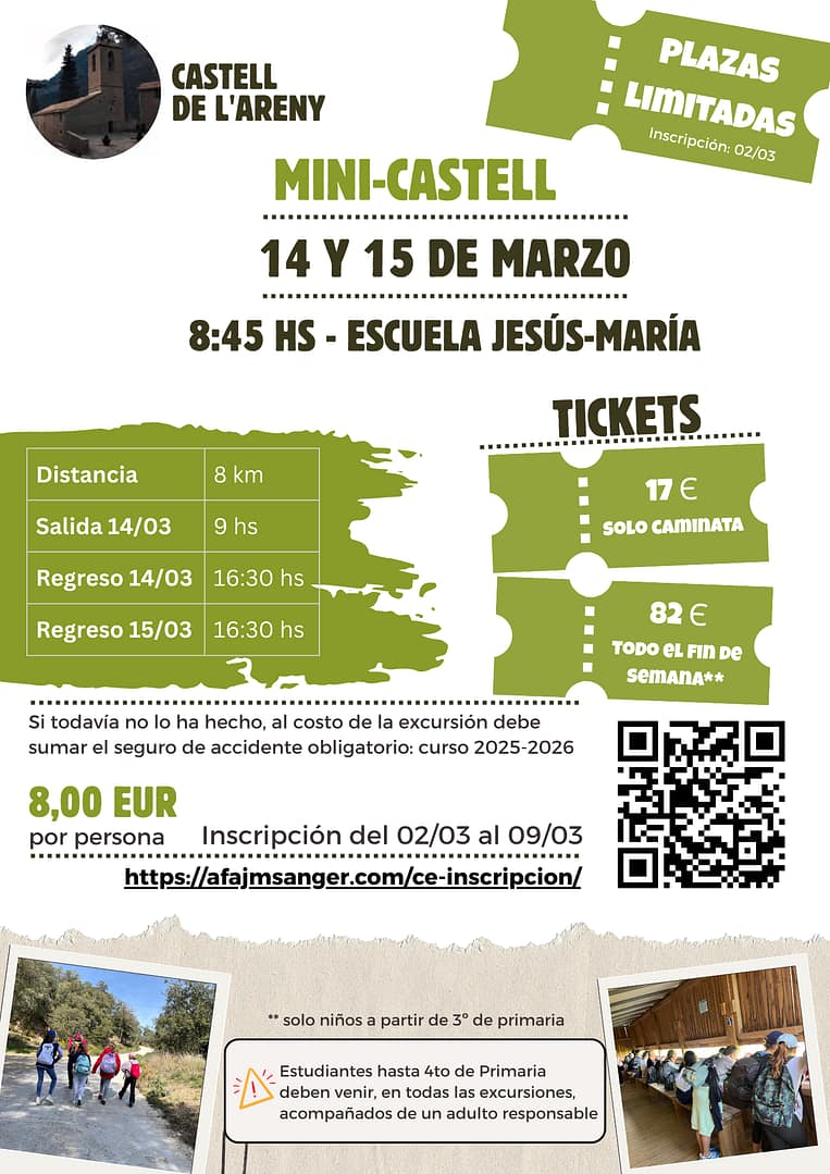 Estudiantes de 4to de Primaria y anteriores deben venir, en todas las excursiones, acompañados de un adulto responsable.