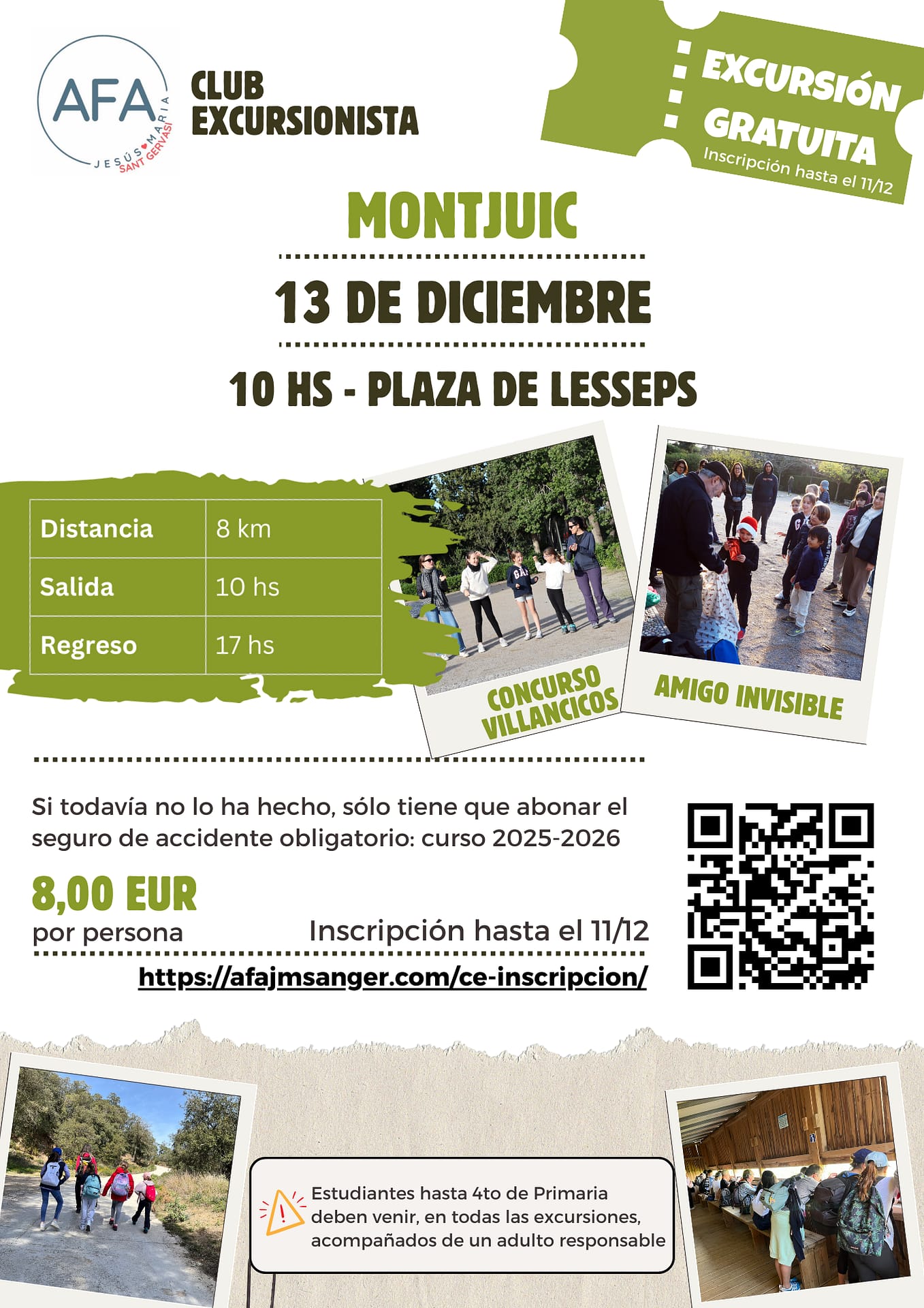 Estudiantes de 4to de Primaria y anteriores deben venir, en todas las excursiones, acompañados de un adulto responsable.